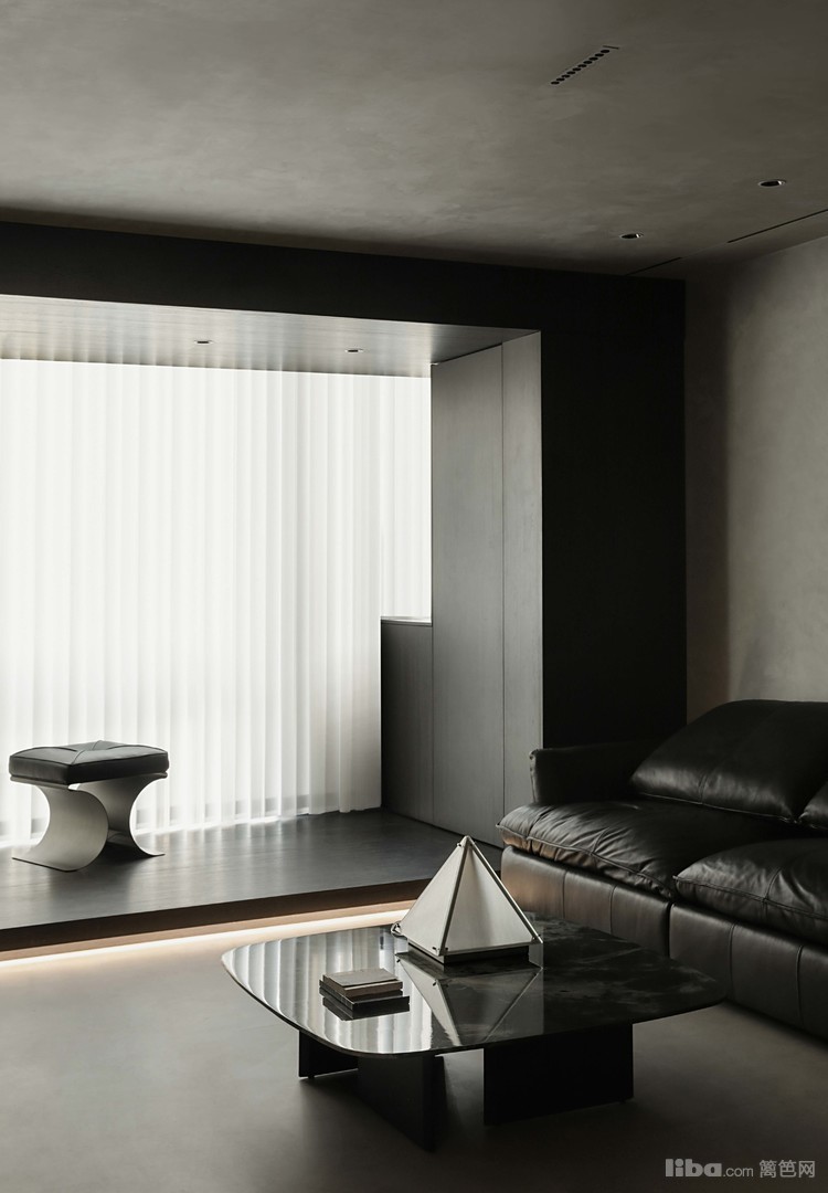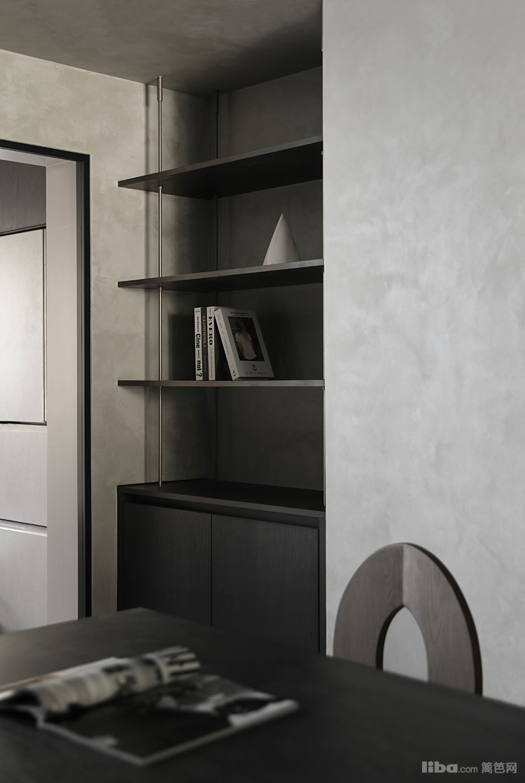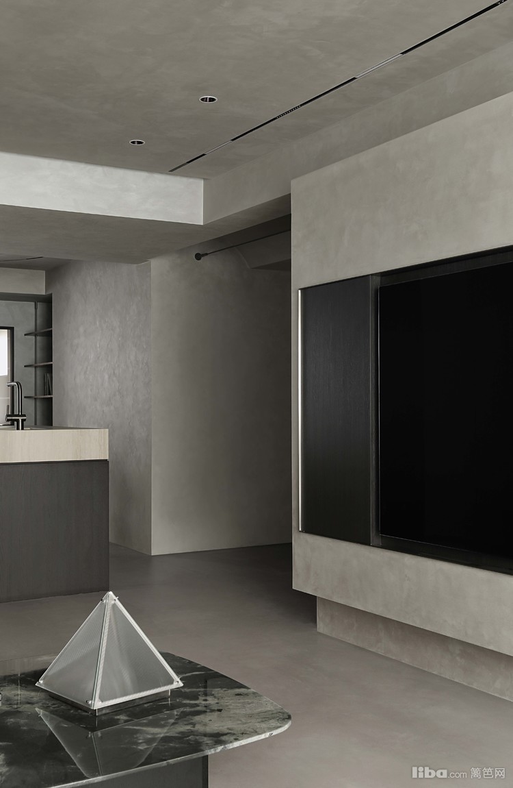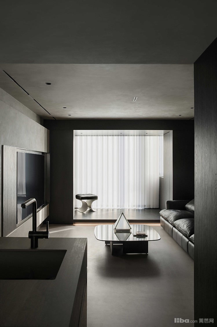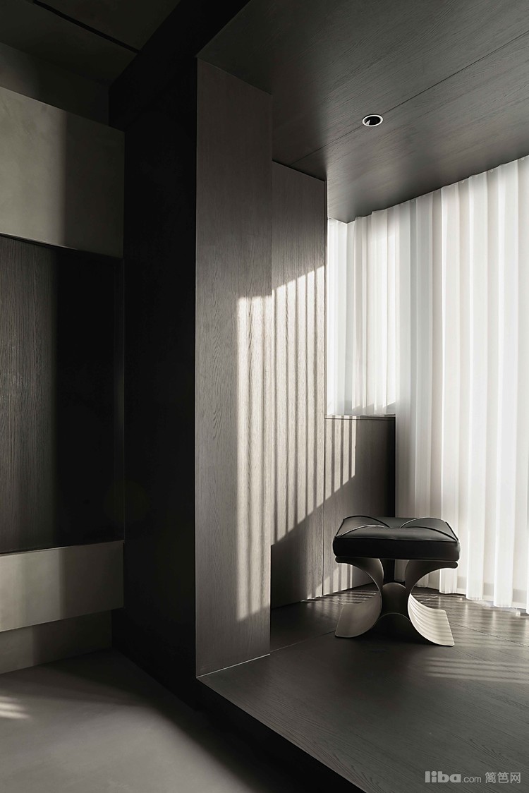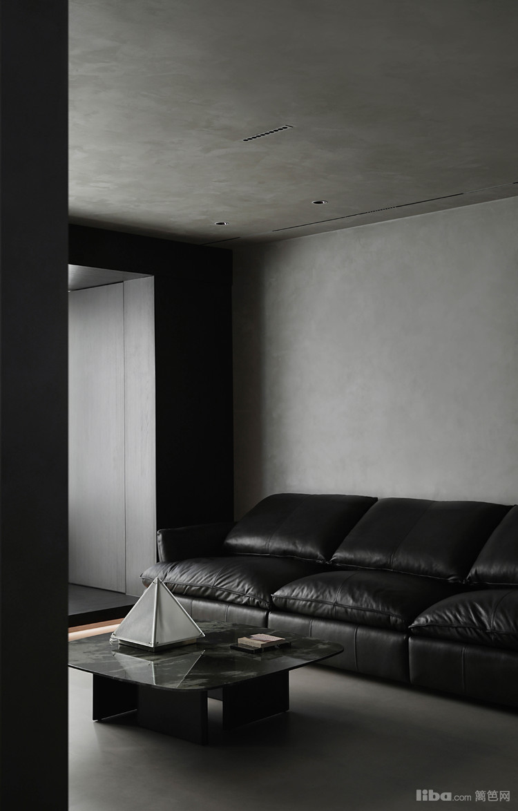 设计师以极简为基调,巧妙运用微水泥、黑色与木质元素相互搭配,融入极简主义元素,打造不一样的极简侘寂风