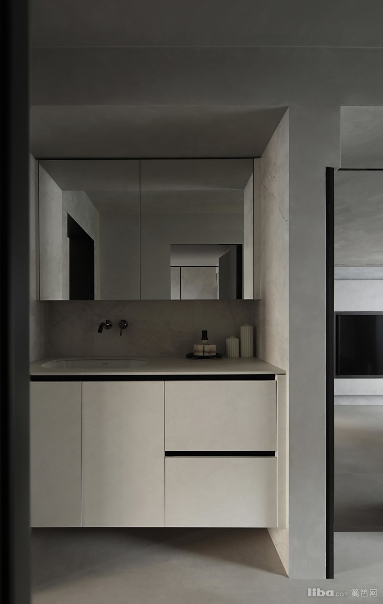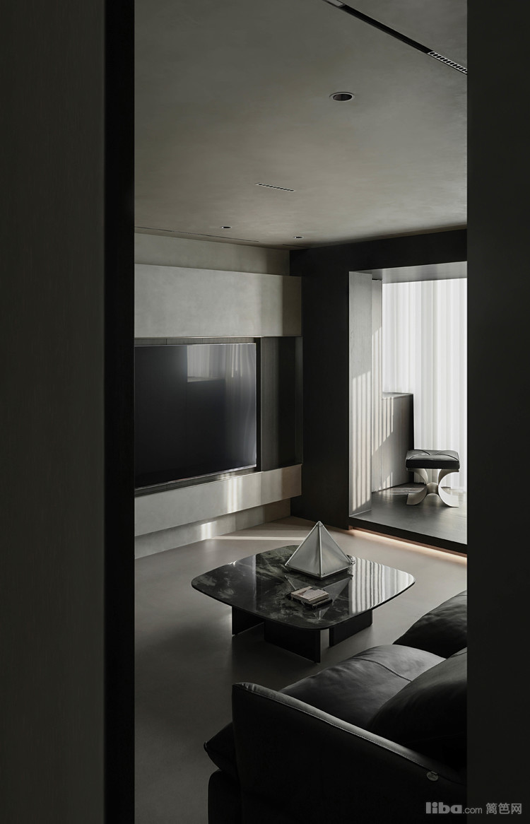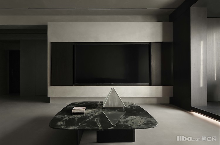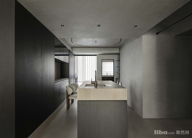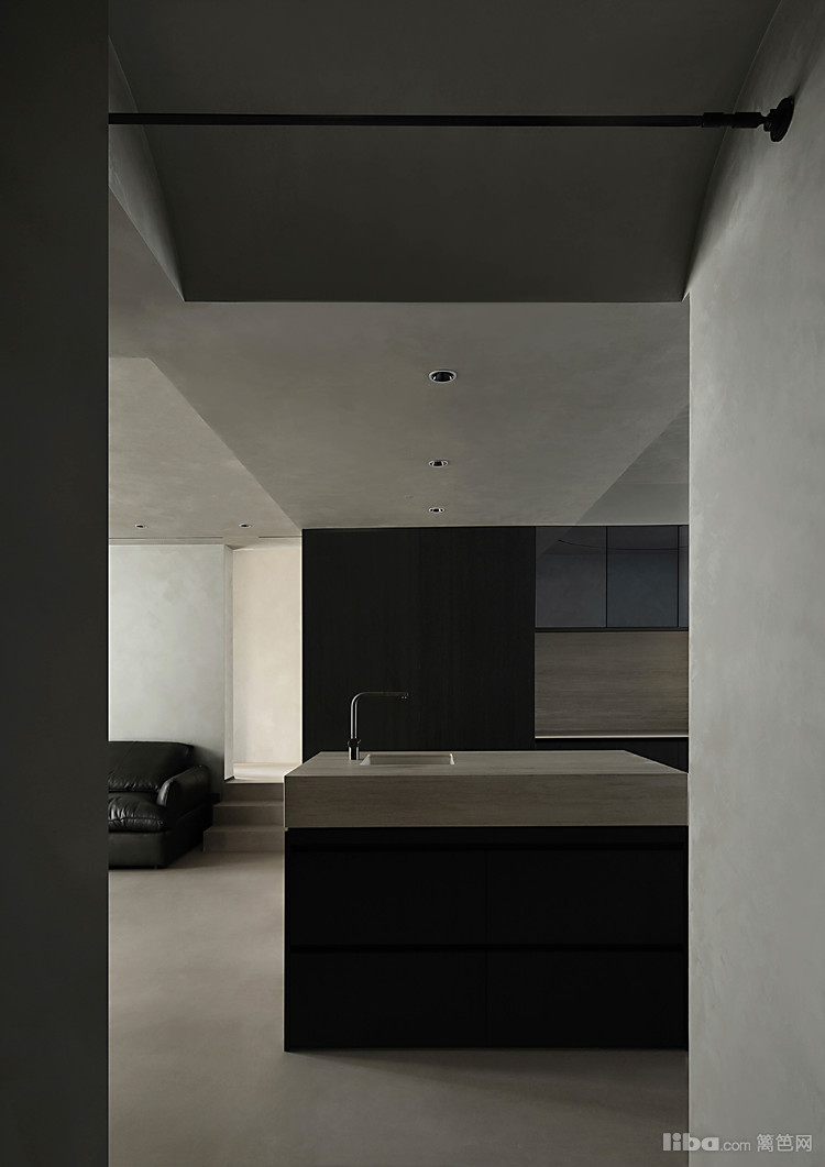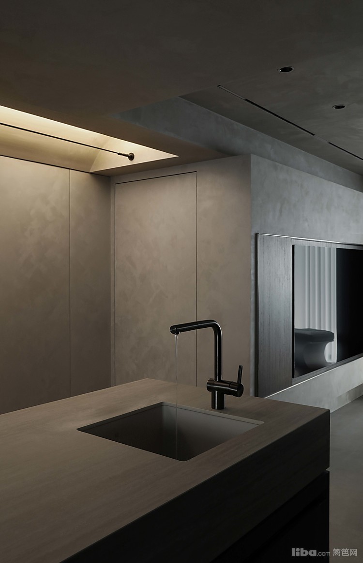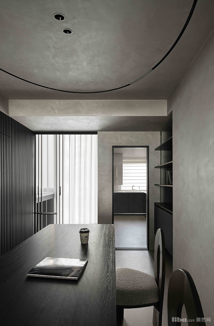 设计师以极简为基调,巧妙运用微水泥、黑色与木质元素相互搭配,融入极简主义元素,打造不一样的极简侘寂风