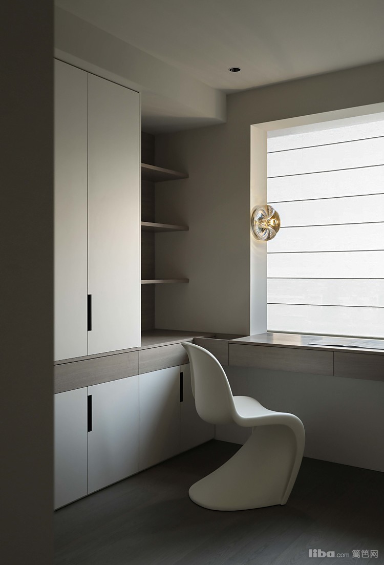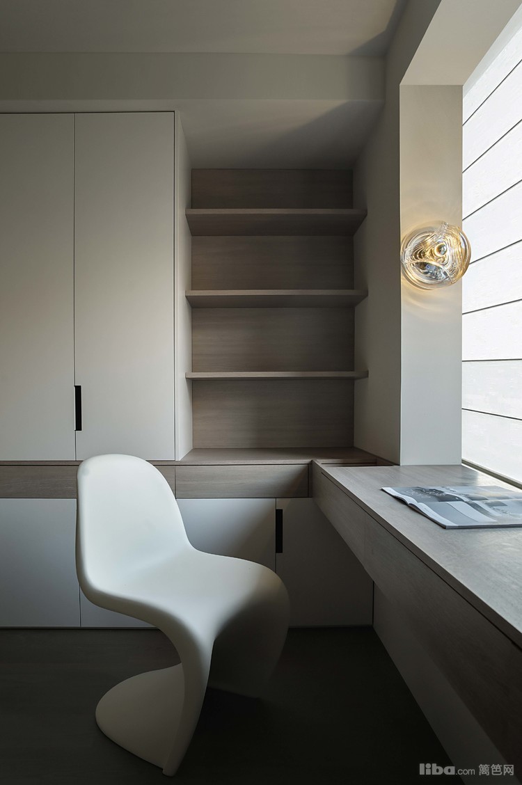 梳妆、办公的空间则全部规划在多功能间内。缺点就是牺牲了一个小卧室但是换来的却是使用的舒适性,也可以把家里的收纳集中到这里,让家里的其他空间少些收纳柜子,让收纳功能集中