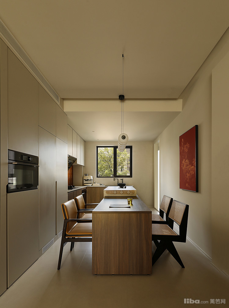 原始厨房和餐厅打通,作为中厨,中岛和餐桌空间,看上去更加通透