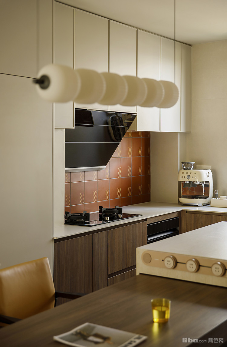 开放式餐厨区和岛台结合在一起增加空间实用性,将家庭交流中心从客厅引入餐厅,提升客厅、餐厅、厨房的互动性。空间之间有了交流也让空间更通透,形成一个完成的多功能餐厨区域