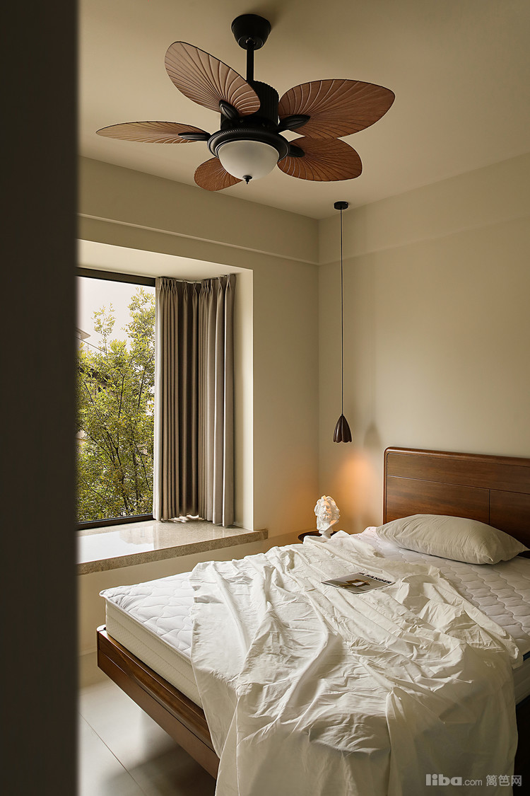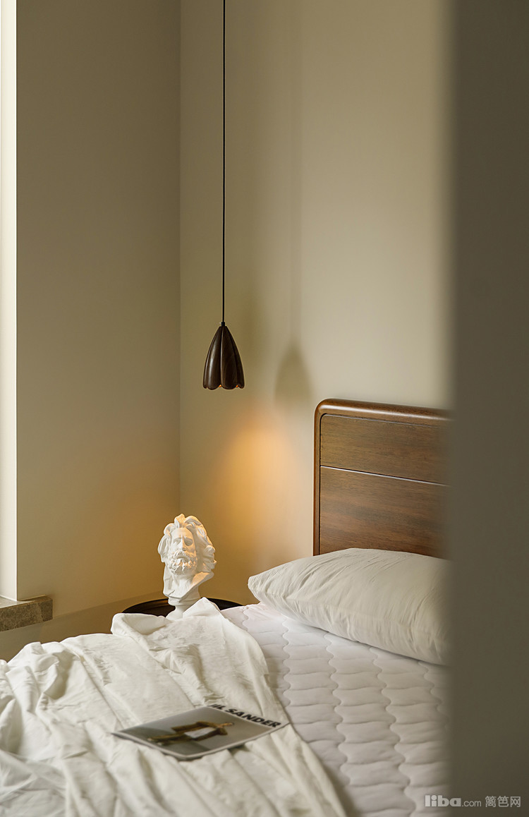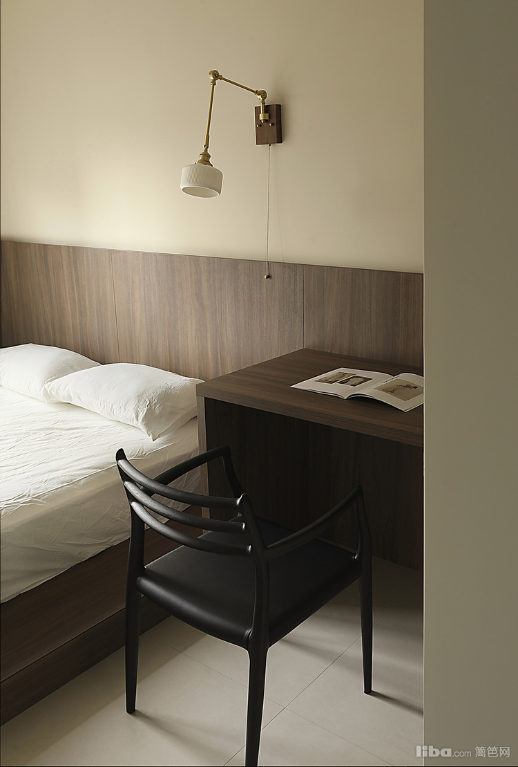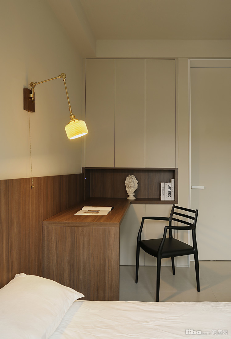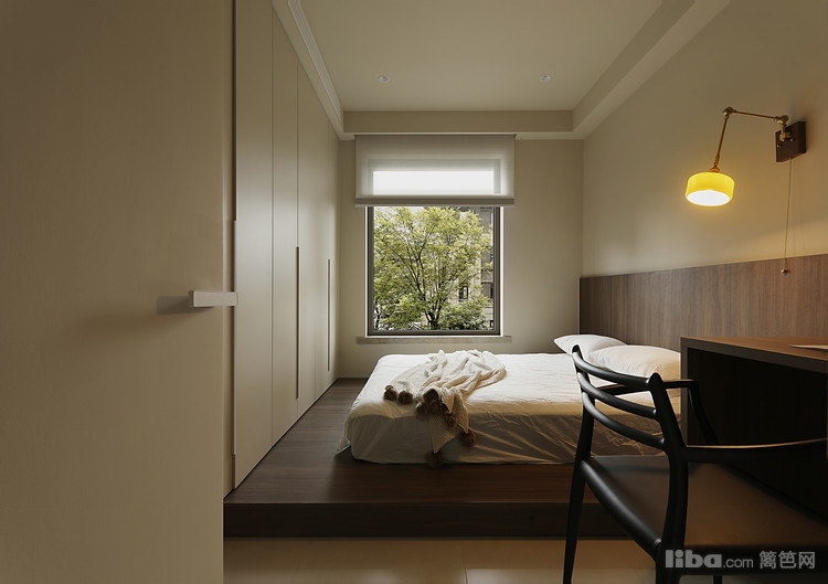 主卧整个空间色调依旧以奶油色为主,一如既往的内敛优雅。为了节省空间,做个地台床,衣橱做在床的对面,更加的隐蔽