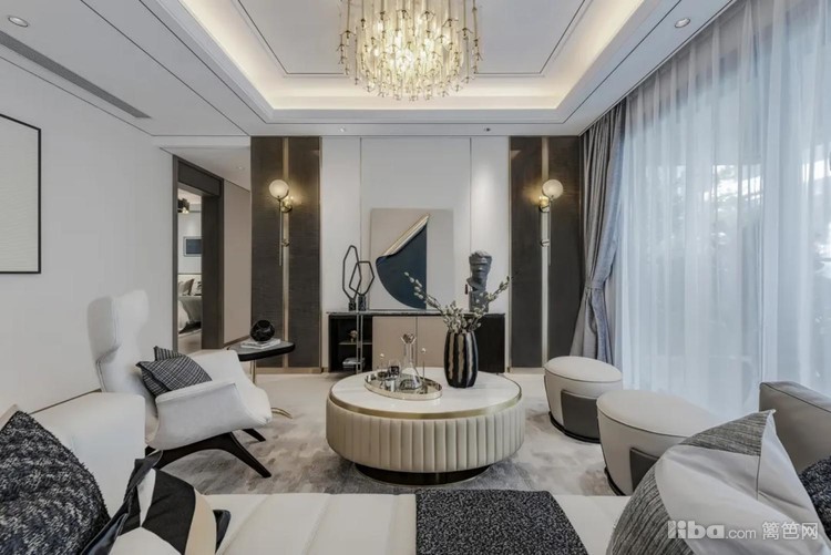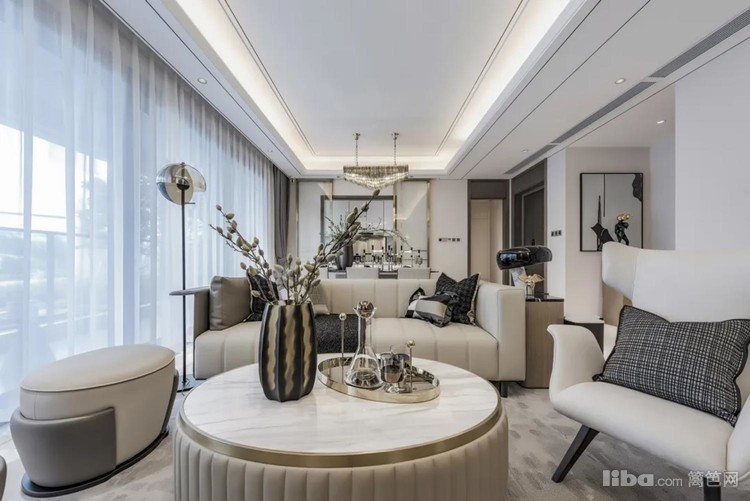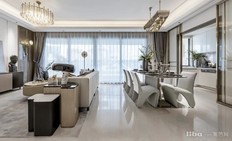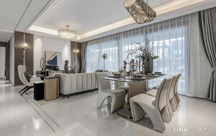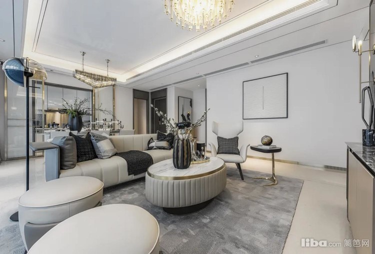 客厅整体以现代大方的空间,布置上优雅精致的家具软装与细节装饰,呈现出一种华丽从容的舒适氛围感。