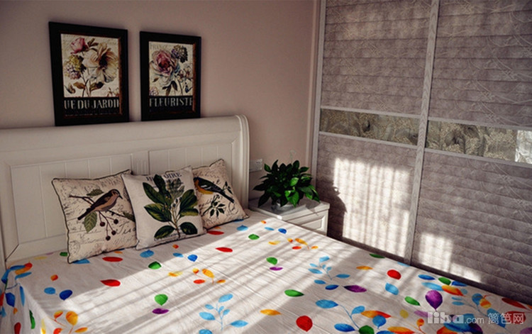 小细节,温暖细致的小细节,床品和壁画很有特色,软装搭配是关键