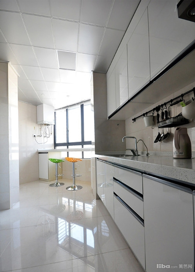 根据户型的需求把厨房打开了,这样使得客厅和餐厅空间看着跟整体空间更开阔。