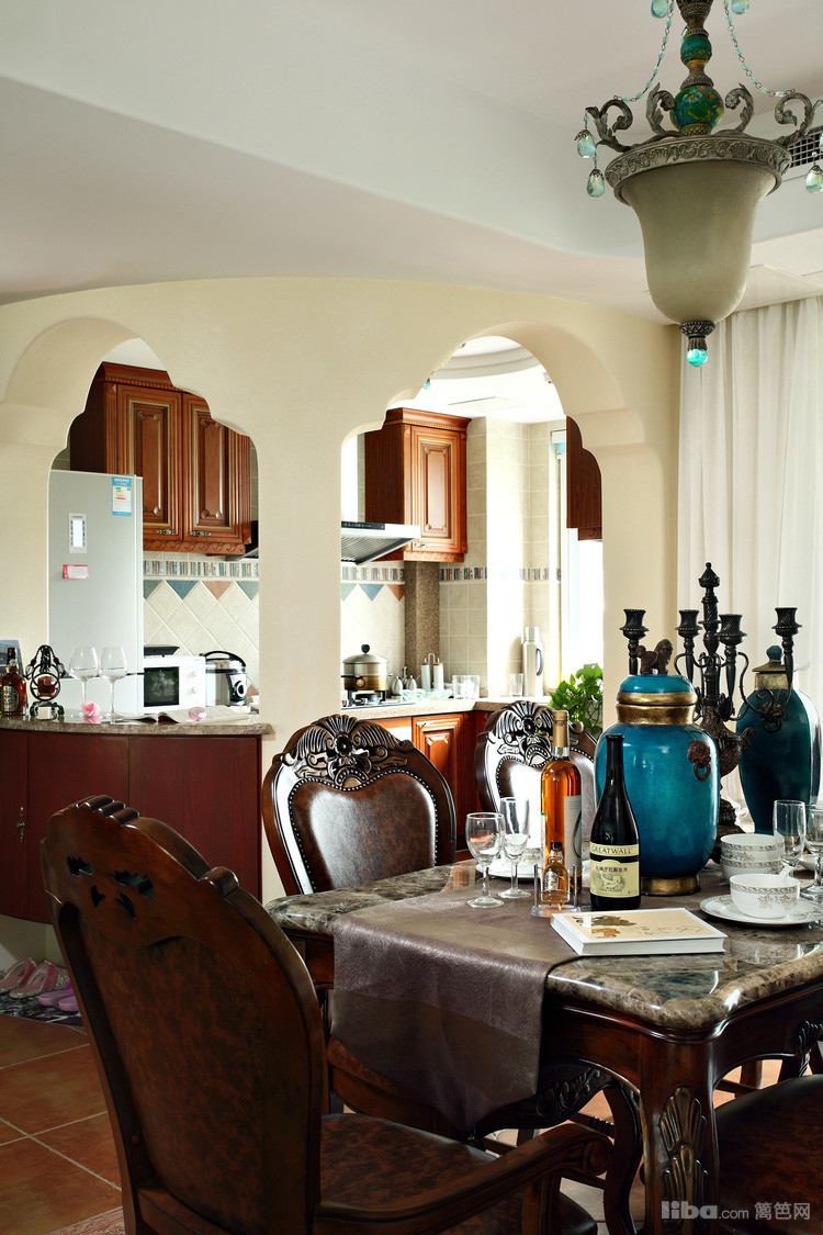 客厅、餐厅都是为了招待来宾和宴请朋友用的。在材料选择上多倾向于较硬、光挺、华丽的材质。