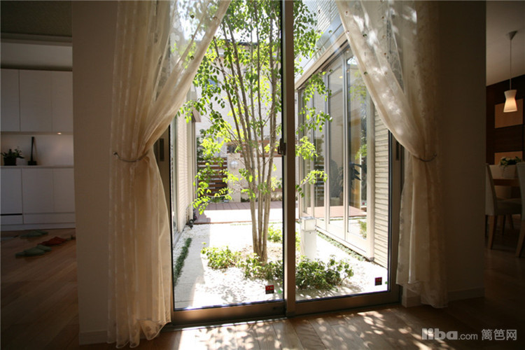 透明的玻璃门增强了整个空间的通透感,加上素色的薄窗帘,显得舒适又温馨。