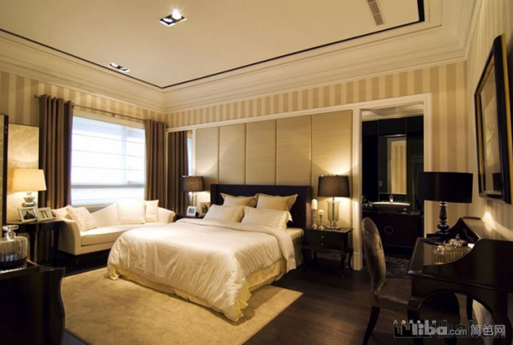 以米色为基调,添加暖色系灯光,使人感到优雅淡定