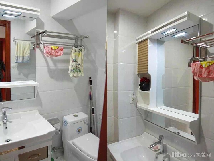 考虑到空间问题,二楼的卫生间并未设淋浴区,简约风格的洗手台与马桶构成了二楼卫生间的全部。