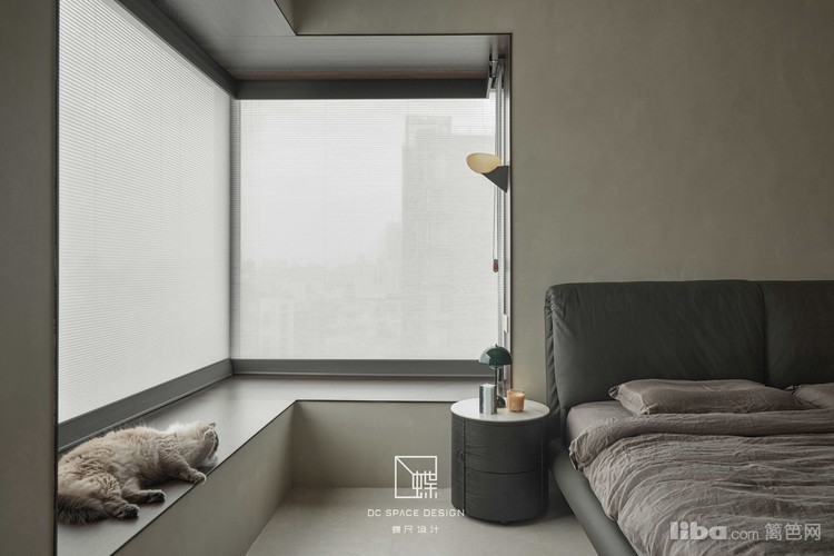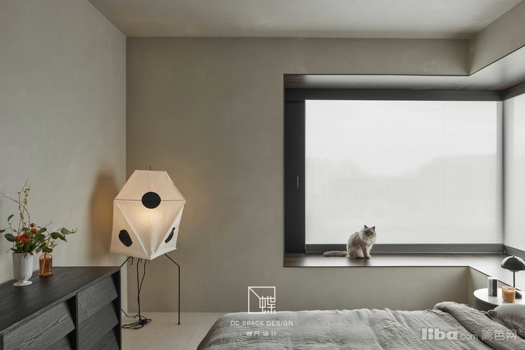 Akari纸灯,点亮暖灰色主卧的温馨,猫咪与人居空间融为一体