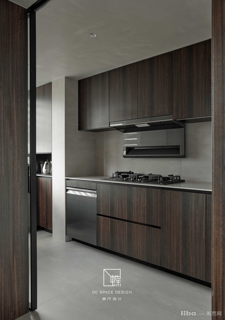 胡桃木色厨房,高级冷静,一字型操作台面简介舒适