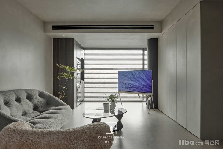 灰色微水泥与胡桃色,构筑高级、素简的东方侘寂感