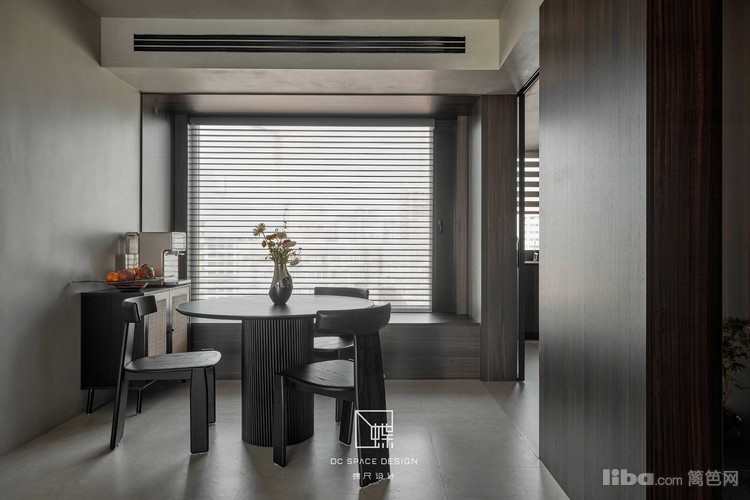 敦厚简介的餐椅,木饰面包裹的墙壁,精致低奢