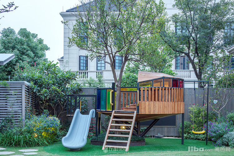 该树屋为原创系列结合现有空间及特殊理念整体造型像一艘半敞篷式的船架在半空寓意着承载孩子的梦想扬帆起航