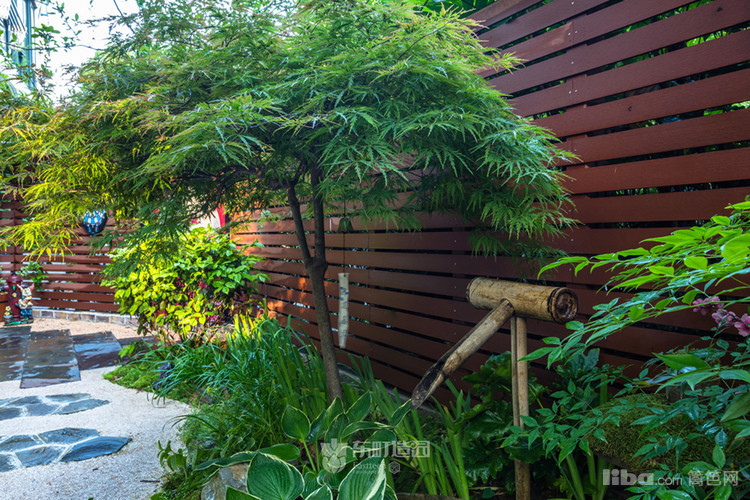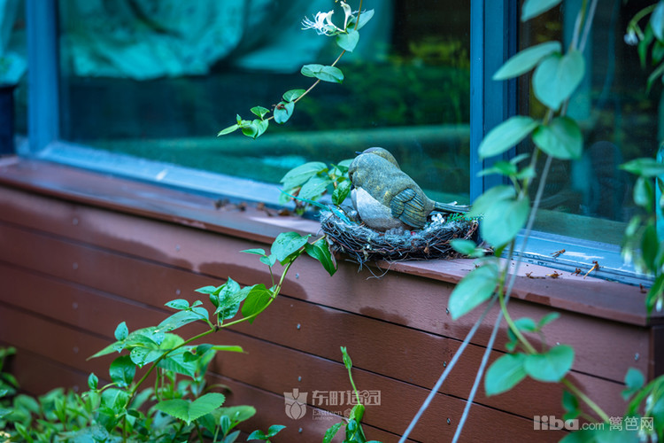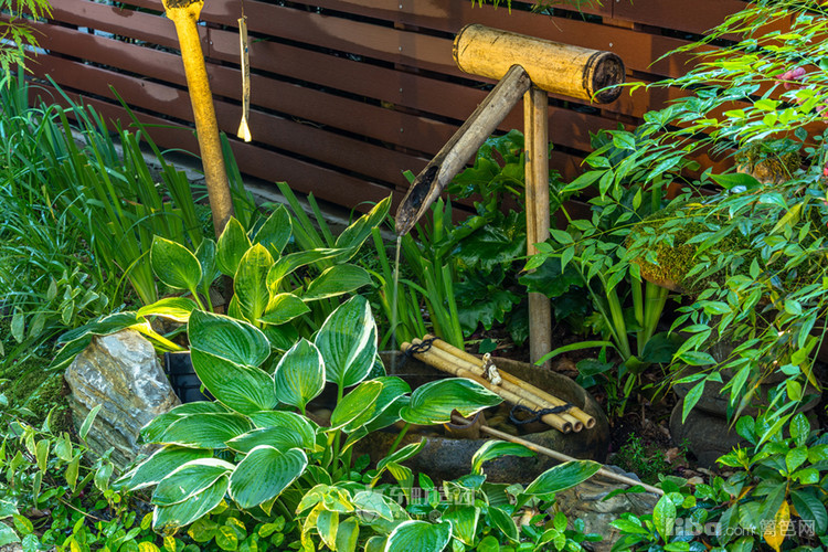 以翠竹作为背景,而主人放置的石鸟 风铃 则仿佛置身于山中。