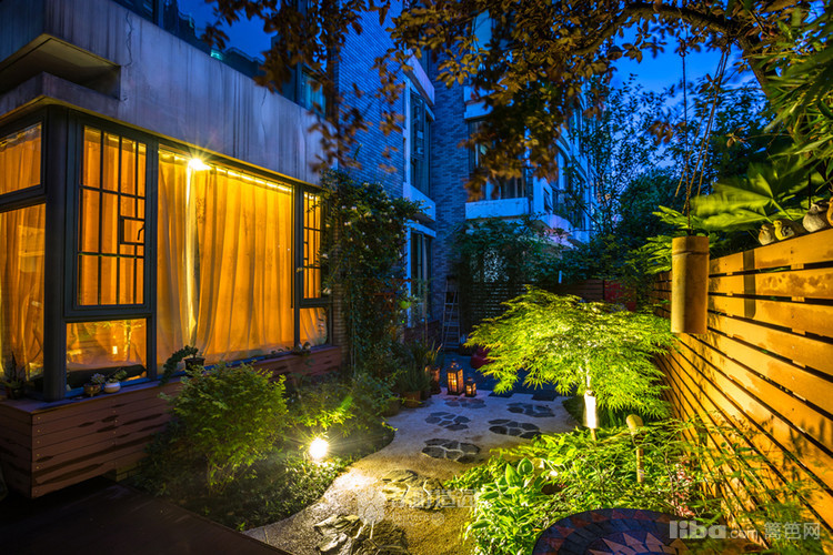 夜晚水钵 灯笼 枫树 被灯光照亮,属于这个时候特有的宁静。