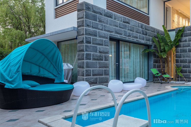 泳池旁还摆放了可供休息的防水座椅。
