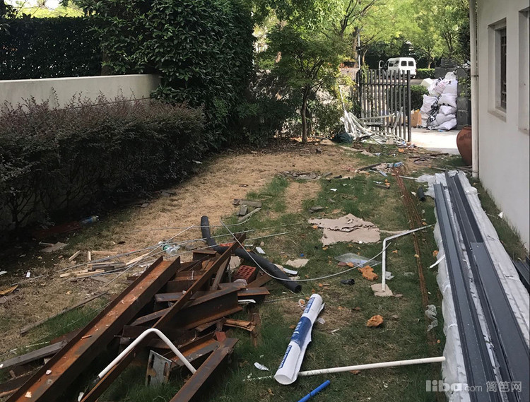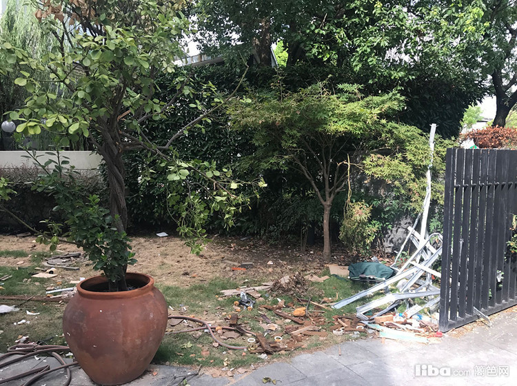 改造前,大盆栽也缺乏美观,地面的垃圾已经很难清理。原有的房屋建筑,把花园分成了狭小细长的两段。