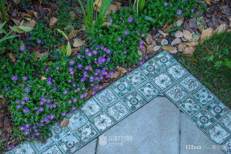 边边角角用了小花砖,它与紫色花儿结合让空间色彩的更加协调