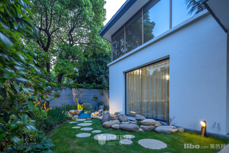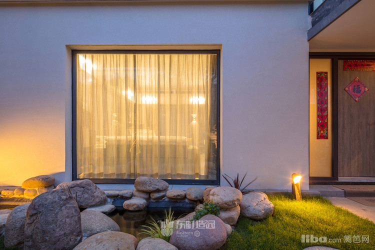 水景延伸到了窗外,采用了模拟溪流的做法,显得更加自然亲切,从窗内也能欣赏到美景。