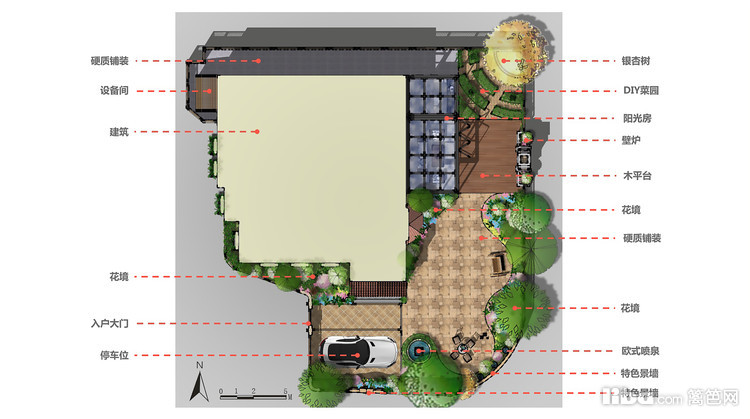 花园里设计了休闲平台,和建筑连在一起,真的特别实用,