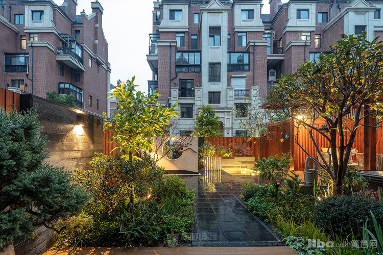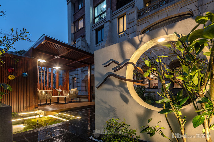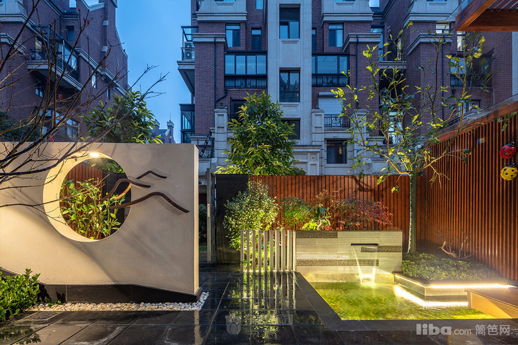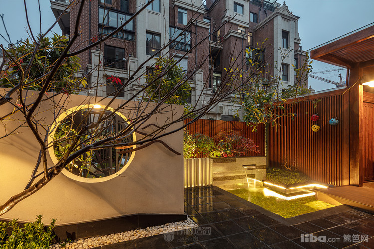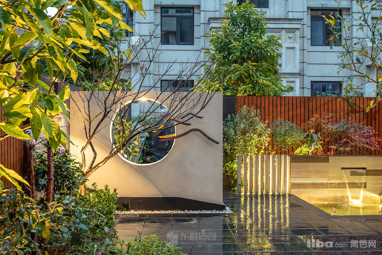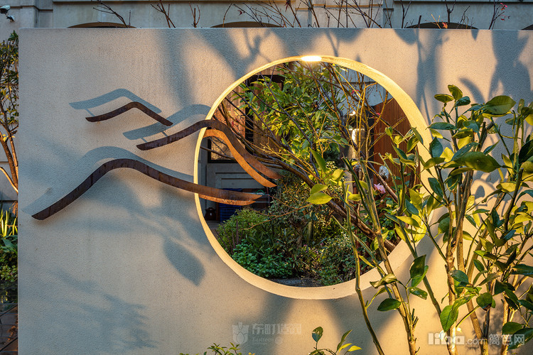 入门:为将传统中式的借景引入,造型别致的景观,在光影映照中