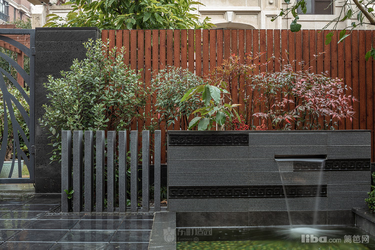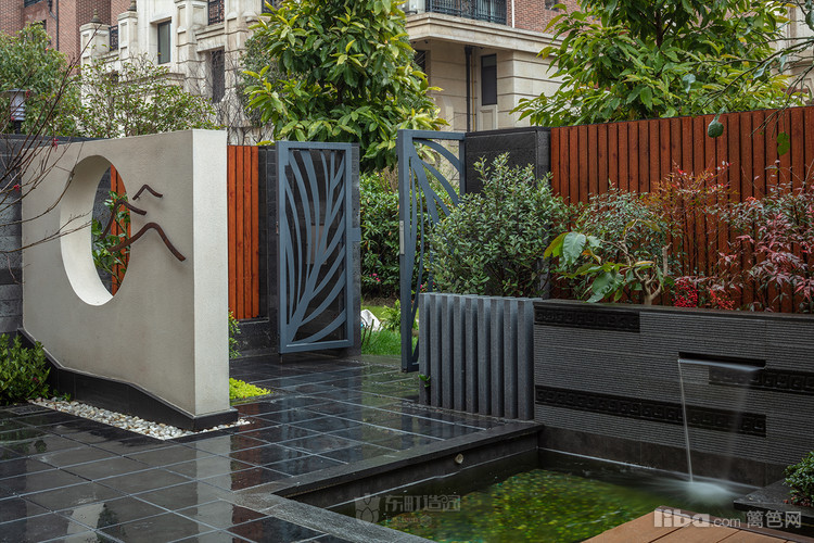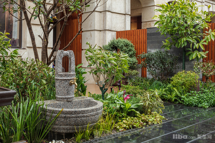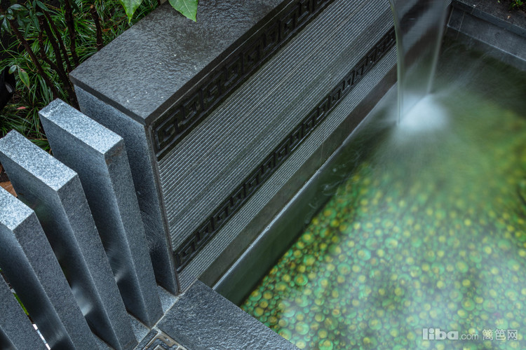 水景:庭院的水景不大,水池的池底用绿色、青色结合的贴砖装饰