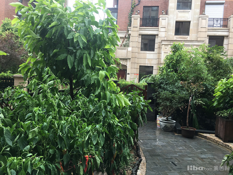 植物的绿色基调与白色的砖墙相互呼应,