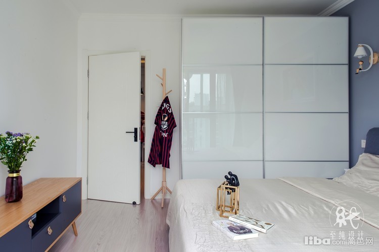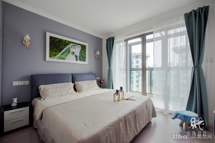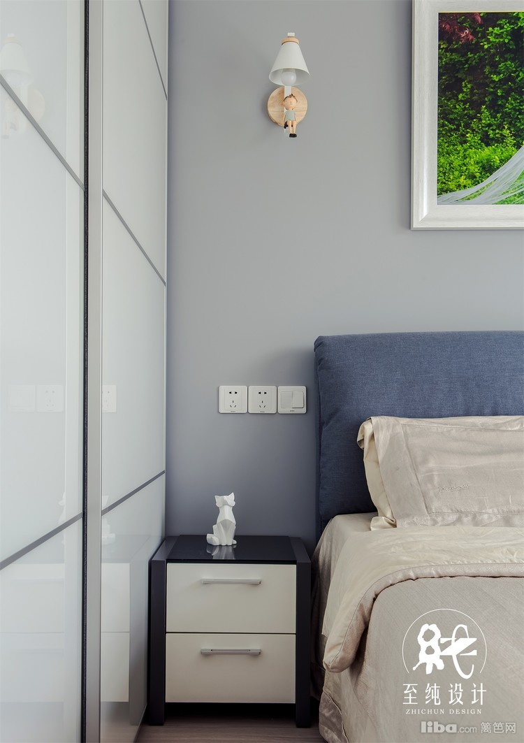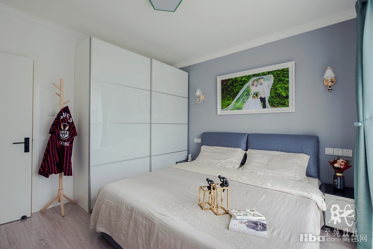浅灰床背景安装壁灯,布置装饰画,摆放白色衣柜及软包床品,显得充满了文艺精致的气息,优雅细腻的床单与淡雅的软装布置,也为卧室带来了一种安静华丽的气质,打造一个充满舒适的卧室氛围。