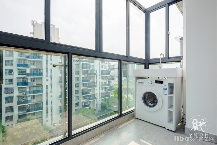阳台放洗衣机,洗完衣服可以直接晾晒,安装洗衣柜,不仅可以增大房子的收纳,也能让阳台看起来更有整体感。