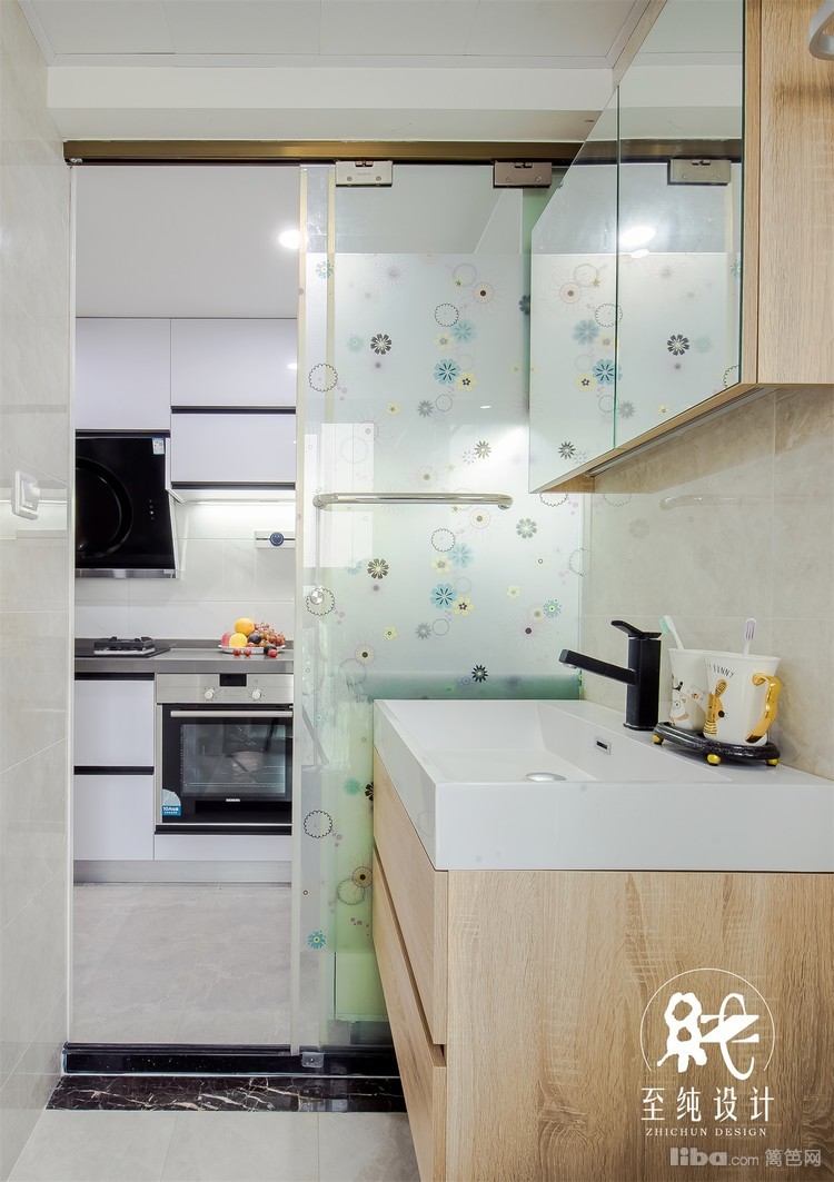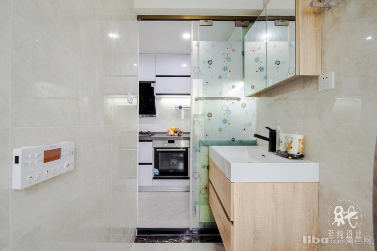 卫生间在家居生活中占据重要地位,每天都需要使用及接触,所以它的布置设计也与我们的健康息息相关,主色调以白色系为主,配原木浴室柜。除了美观以外,位置设计及动线处理显得尤为重要。