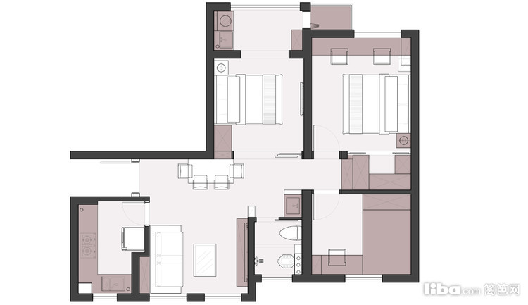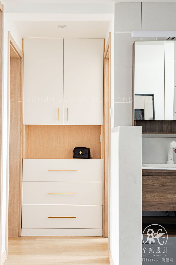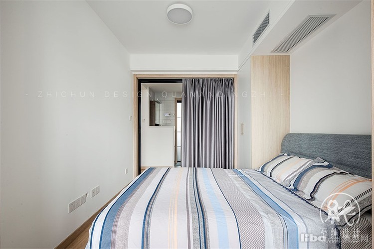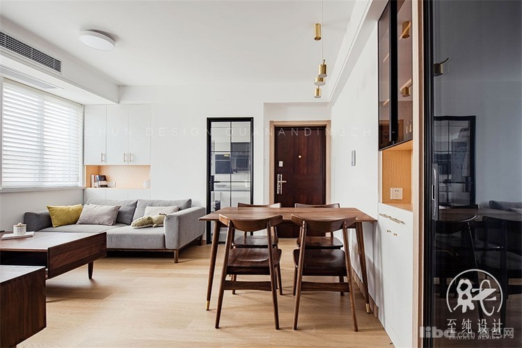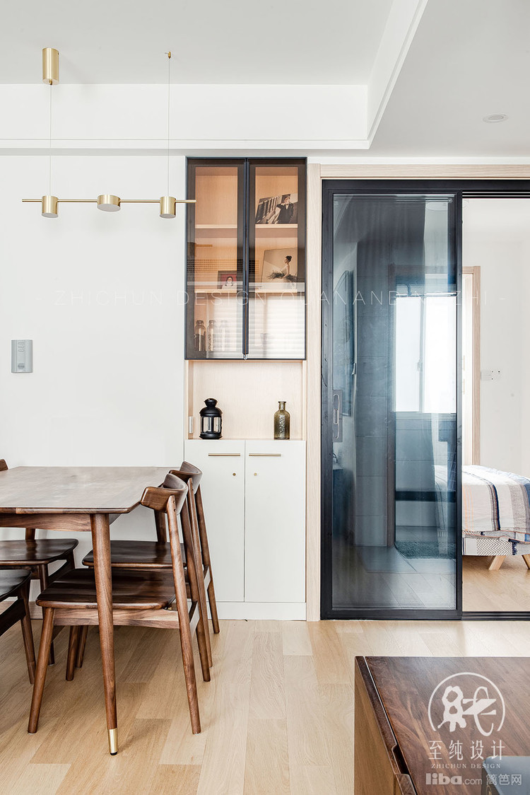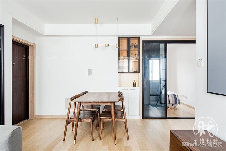 次卧原有墙体打掉,增加了客餐厅的采光,占用次卧衣柜的位置,做了个双开门的餐边柜。