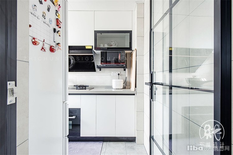 原有墙面敲掉,往客厅移四十公分,保证了狭小的厨房放得下冰箱的前提下,厨房还不拥挤。