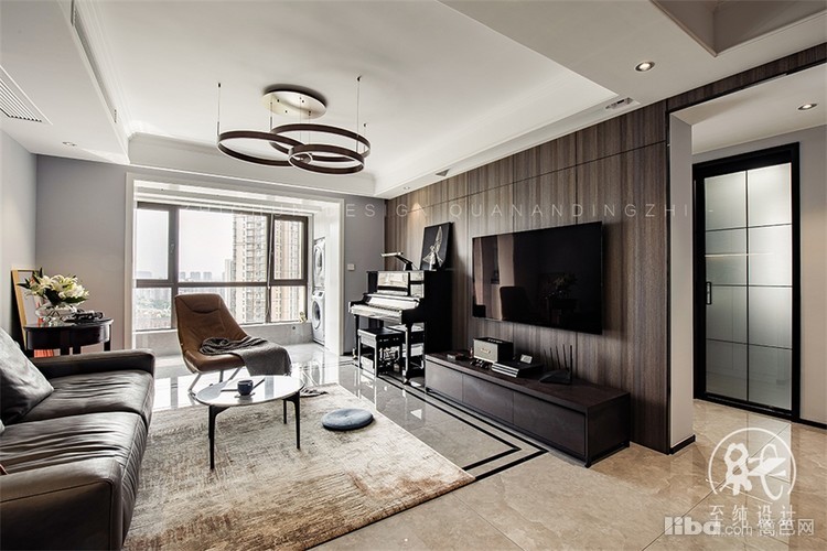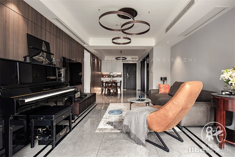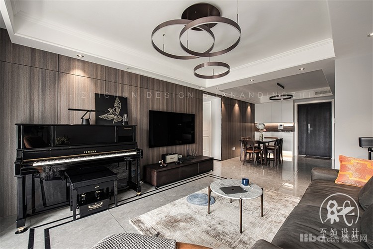 考虑到置放钢琴,所以把原有的电视背景墙做了加长处理,一是改善原有过道的空间过于空旷浪费;