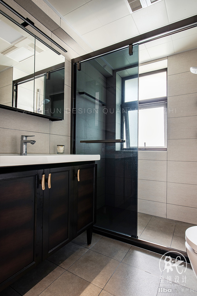 二是加长处理的位置做了储物柜设计,日常洗漱的纸巾用品等均可收纳在内;
