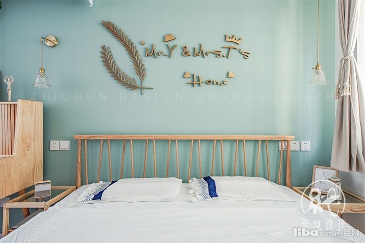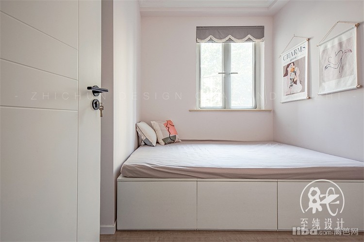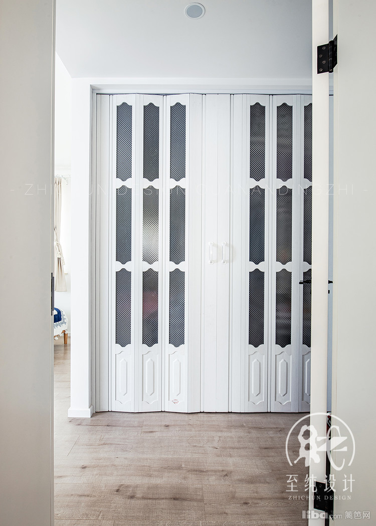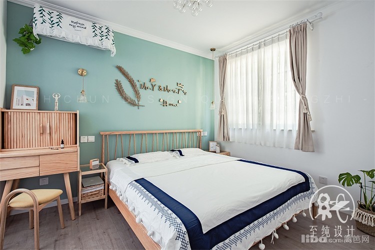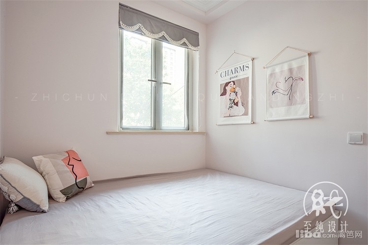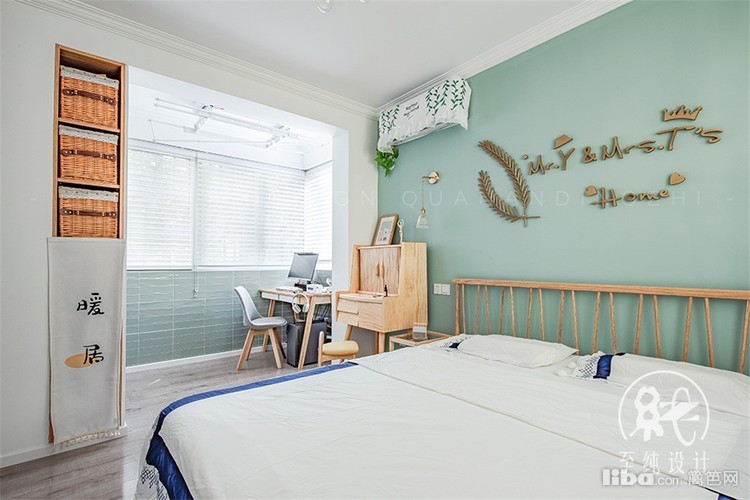 主卧相比进深,长度更大,故在主卧室开辟出独立的衣帽间,也是主卧主要的储物空间;衣帽间里的空间也重新做了规划,不以常规的柜子为结构,以更灵活的活动层板和铁艺置物架为主,环保又实用。