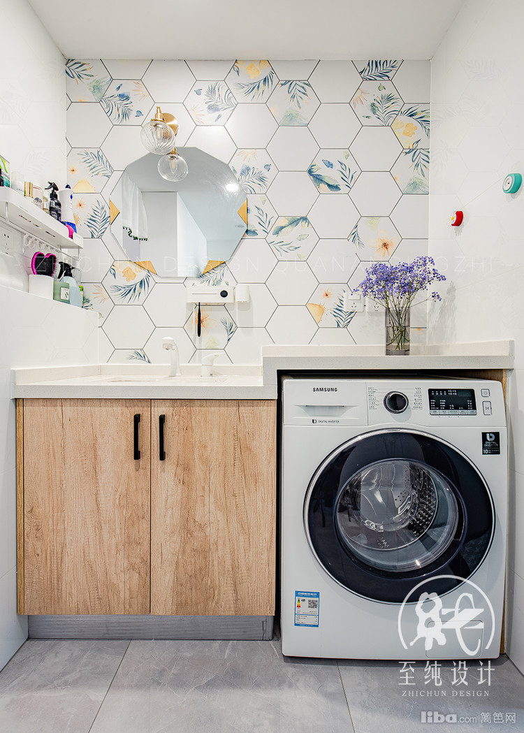 借用过道部分空间把卫生间整体外扩,做了干湿分离,平时洗衣及简单洗漱都可在干区直接完成。