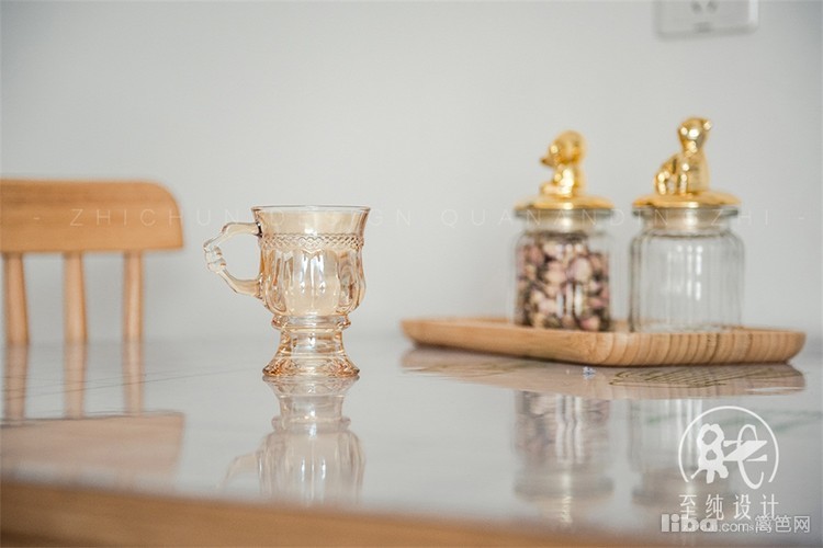 餐厅与厨房相隔的空间做了双面柜设计,一是两面柜,面朝客厅是酒柜,面朝厨房是干货(如坚果、茶等)收纳柜,一柜两用,实用收纳解决了;二是视野上作为隔断,用来遮挡卫生间门对应客餐厅。