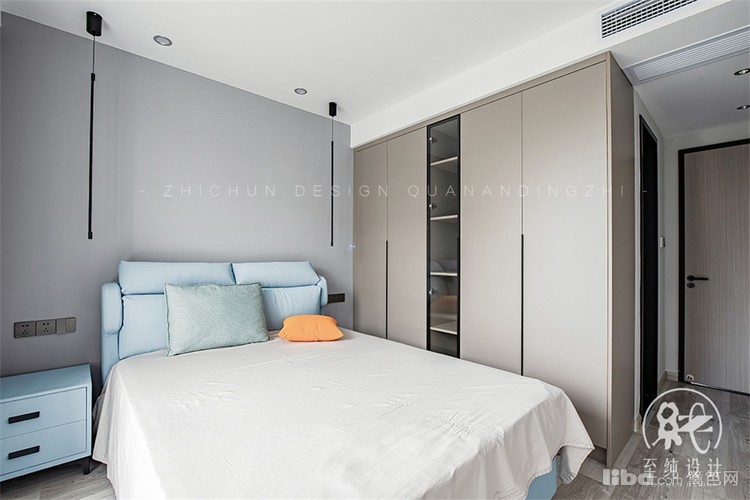 次卧做了套间设计,独立带卫生间;同时延续房屋整体设计元素--无主灯设计,摒弃一切复杂要素,让空间刚刚好。