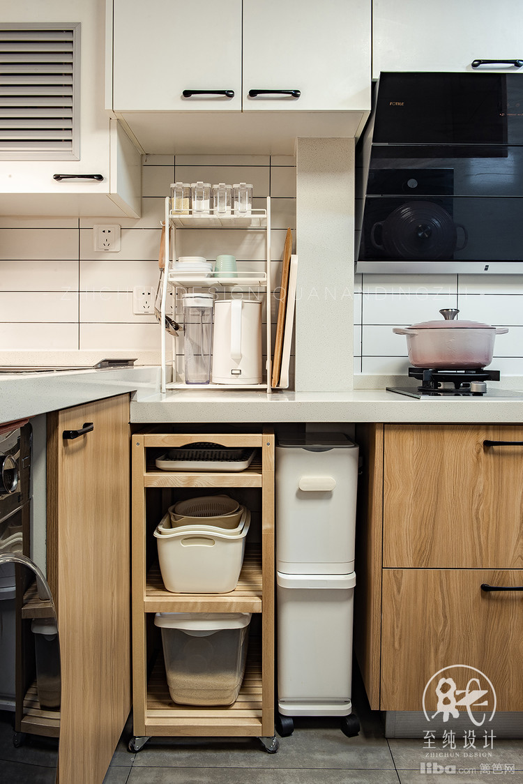 条头糕是上海常见的老破小房型,刚好我们就是,打开防盗门就是厨房的位置,完全呈现出小而精。在设计的过程中也是经过多次锤炼最终就是大家看到的效果。