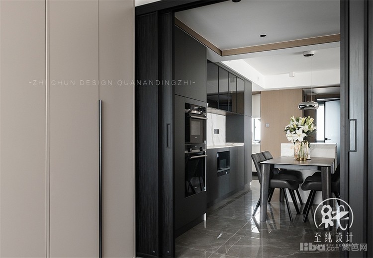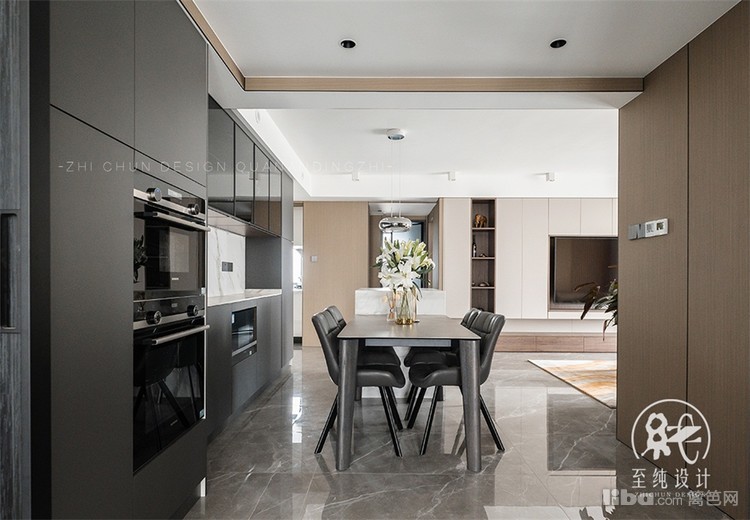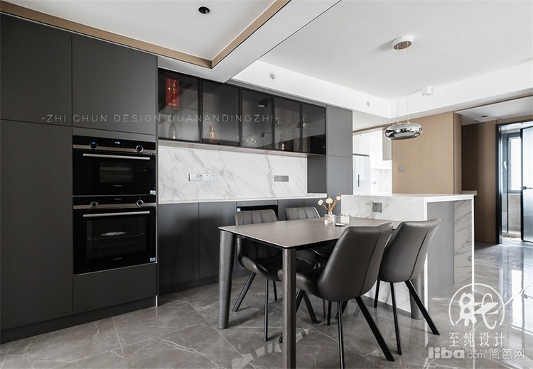 餐厅做了中岛带餐桌功能,使用方便,美观大气。