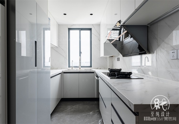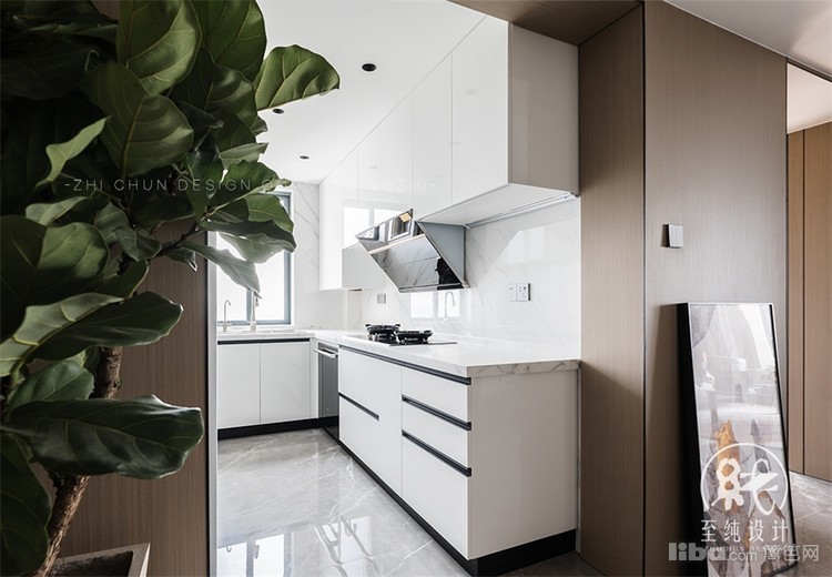 考虑到目前相对下厨几率不高,故厨房设计了开放式厨房,目前不打算装门,但留有一定空间,以后可以根据需求DIY自行调整是否安装。