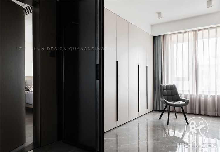 只有房门后面有个小的储物柜,另外一个房间就是整个主卧的步入式衣帽间,储物多还大气。