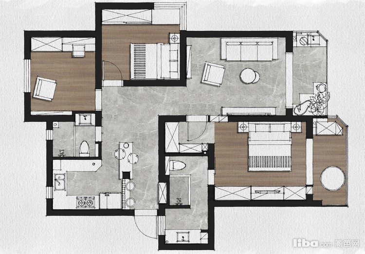 混搭・三房・109㎡・半包13万