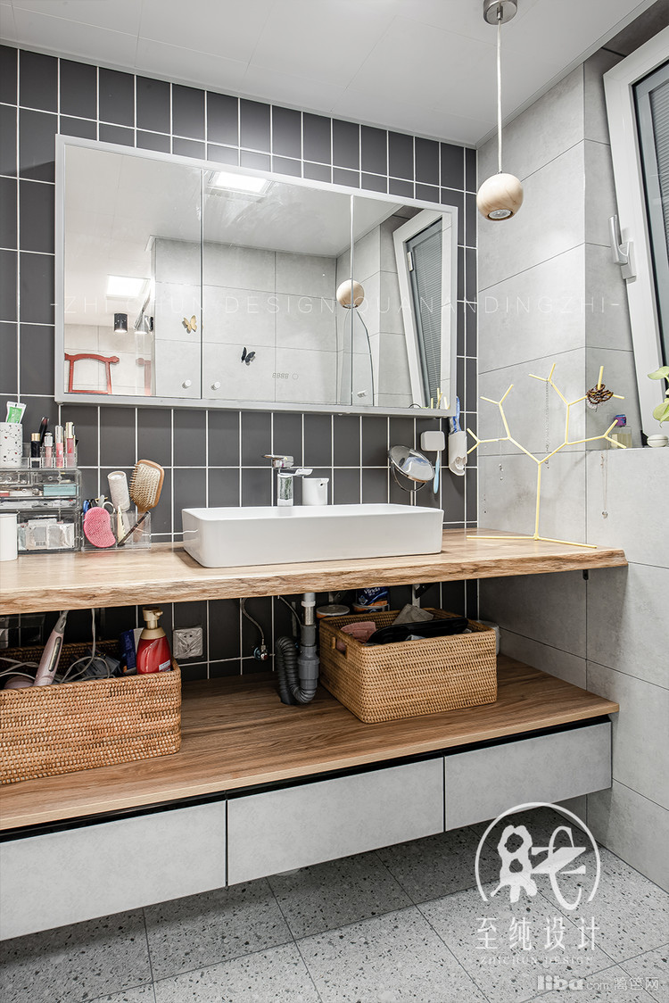 原有厨房做了平时洗漱干区,烟道位置直接对做了壁龛,增加储物空间。