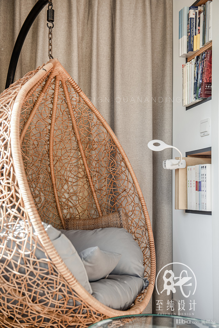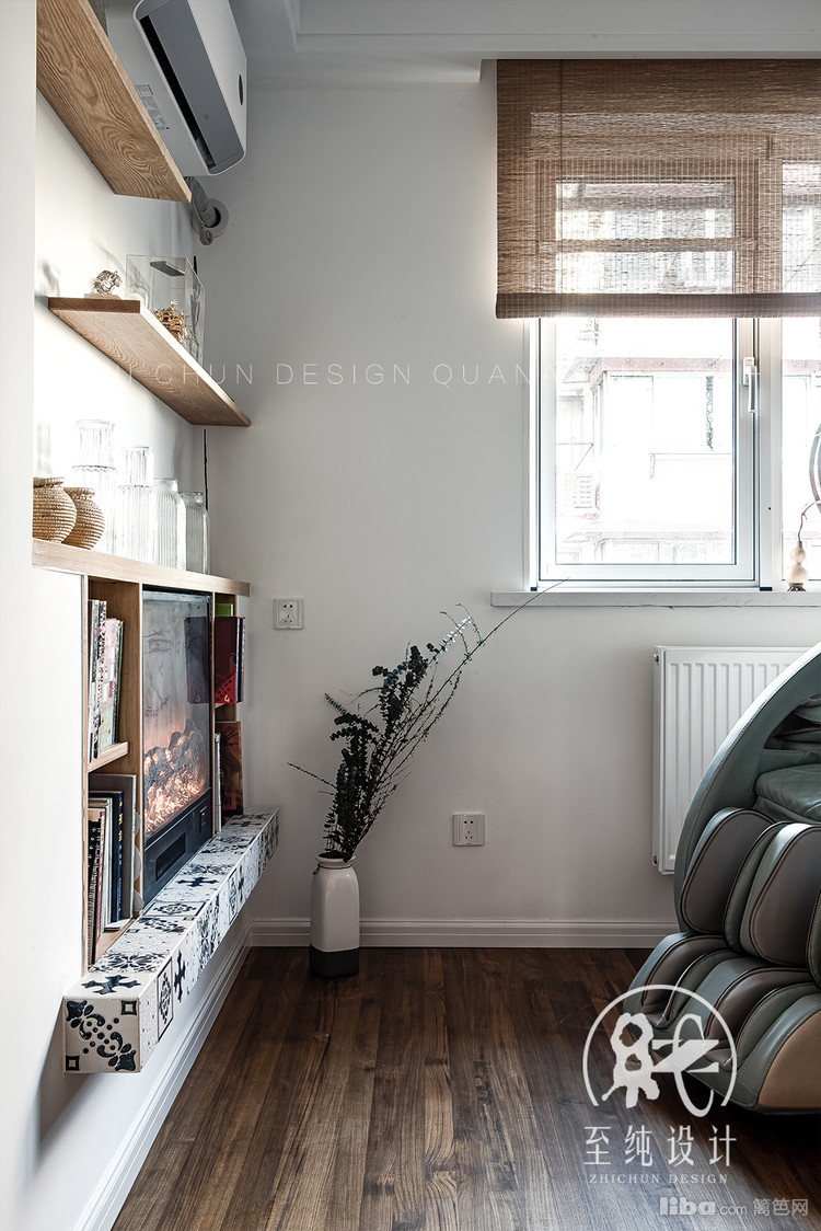 与客厅饮茶水景区别布景,主打简约,右侧转角墙面有效利用,内嵌壁龛,拥有一个轻松惬意的读书角。