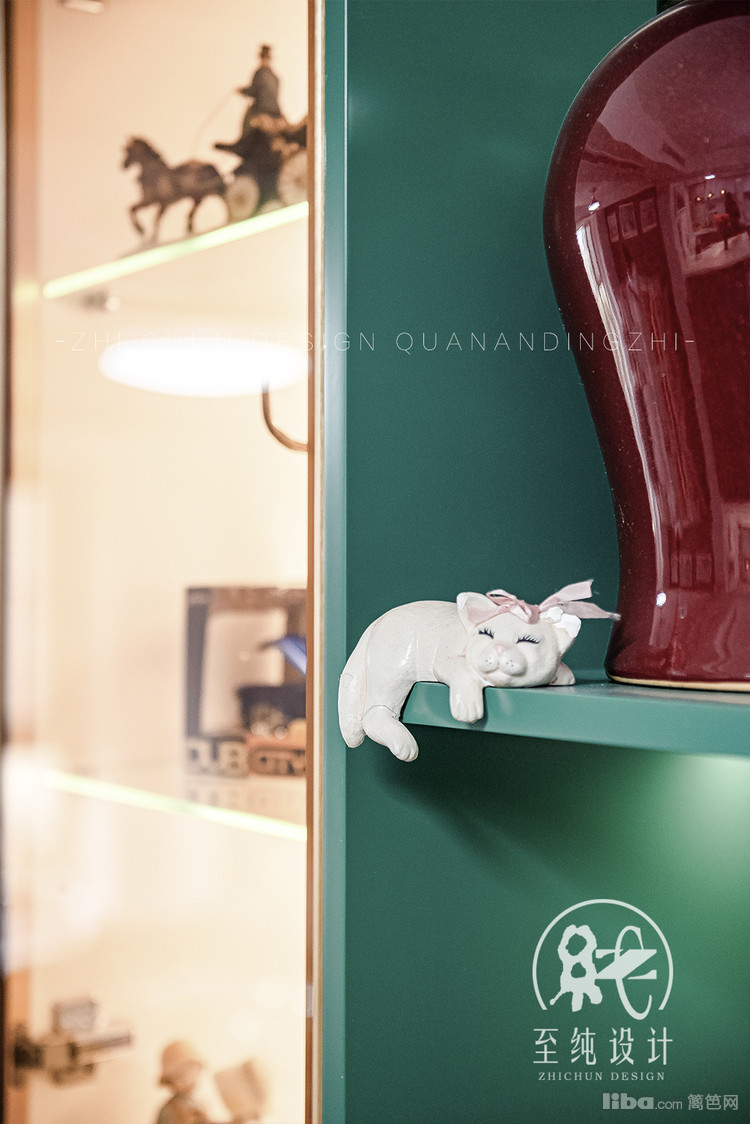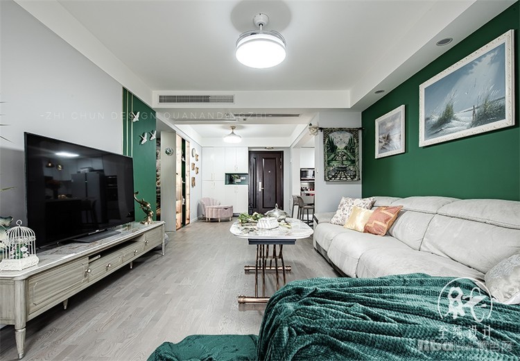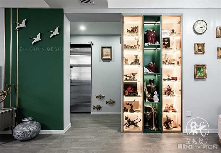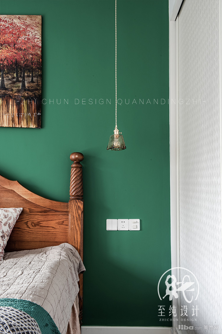 从风格来讲的话,这次属于混搭带复古轻奢的感觉,在保留原有实木复古家具的基础上,配以近两年流行的墨绿色