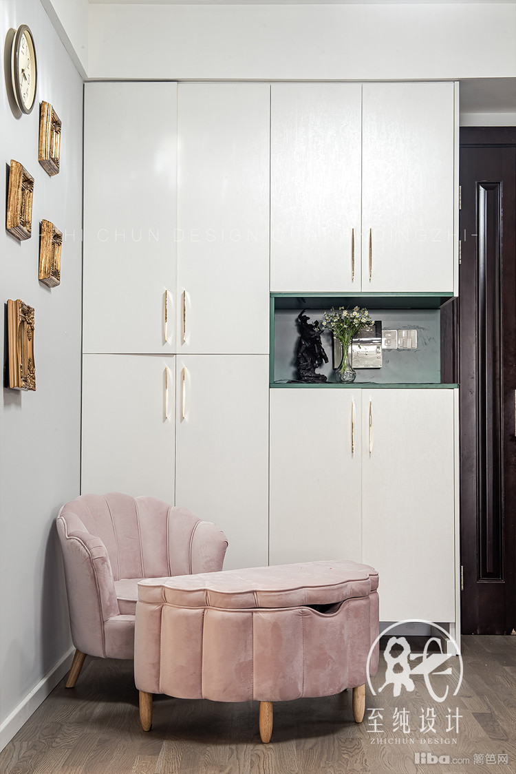 入户除了是鞋柜、日常出入外,平时也是孙女的娱乐地盘。樱花粉桌椅,可作为孩童玩乐世界的工具,