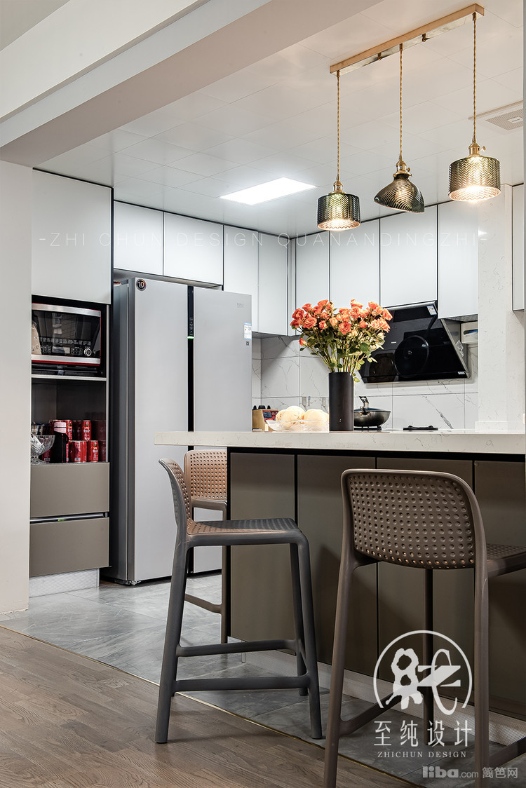 开放式厨房、大吸力侧吸的油烟灶具、高低台的操作台面,平时享受制作美食,动线流畅,心情满满。