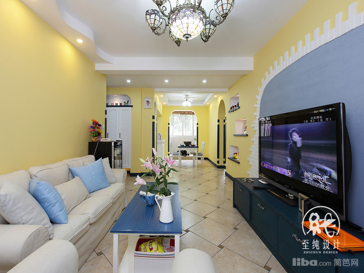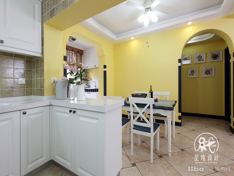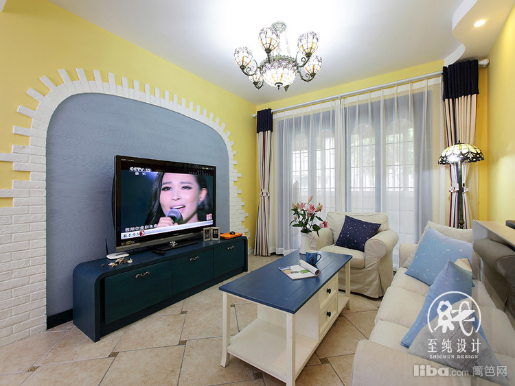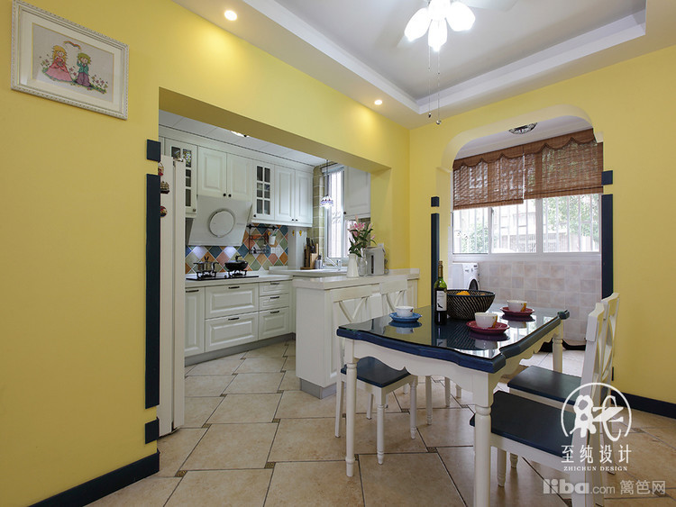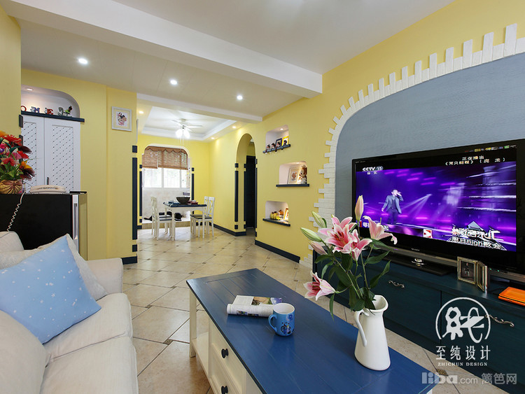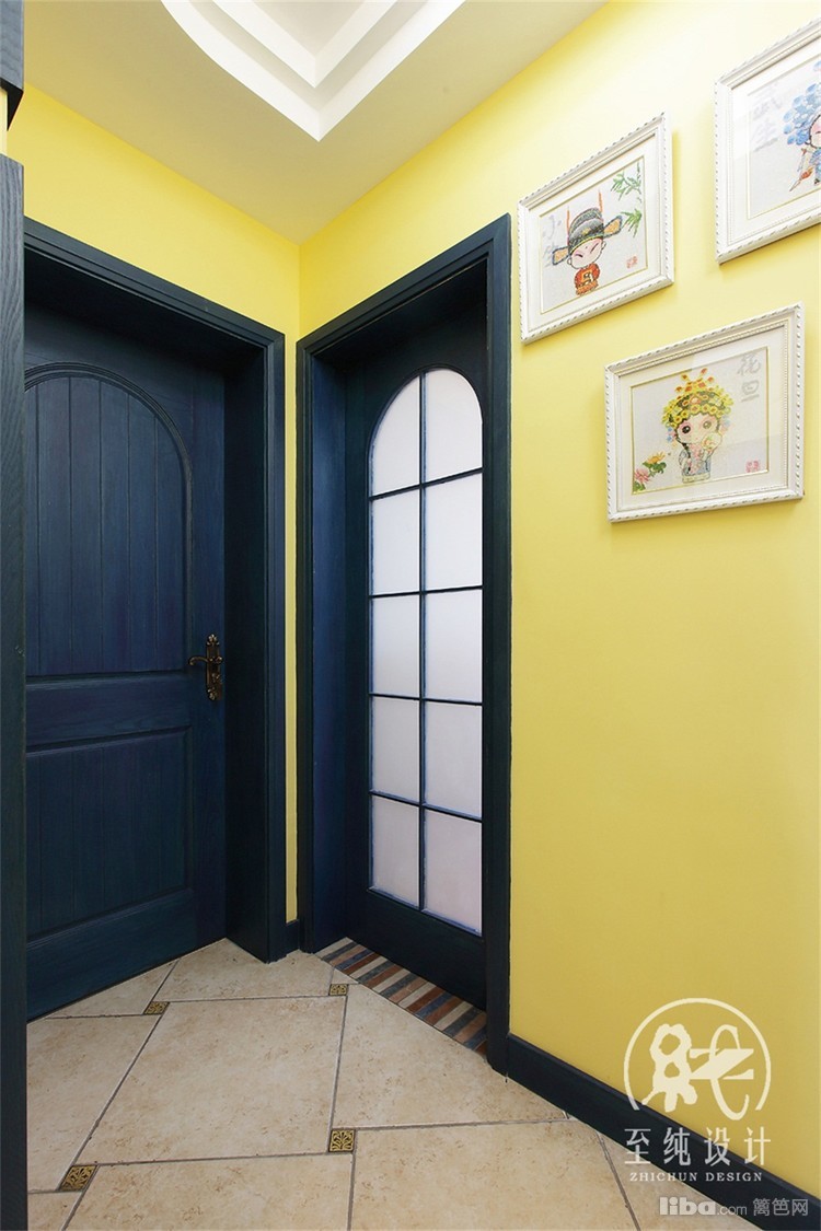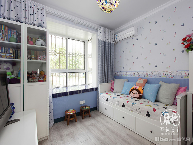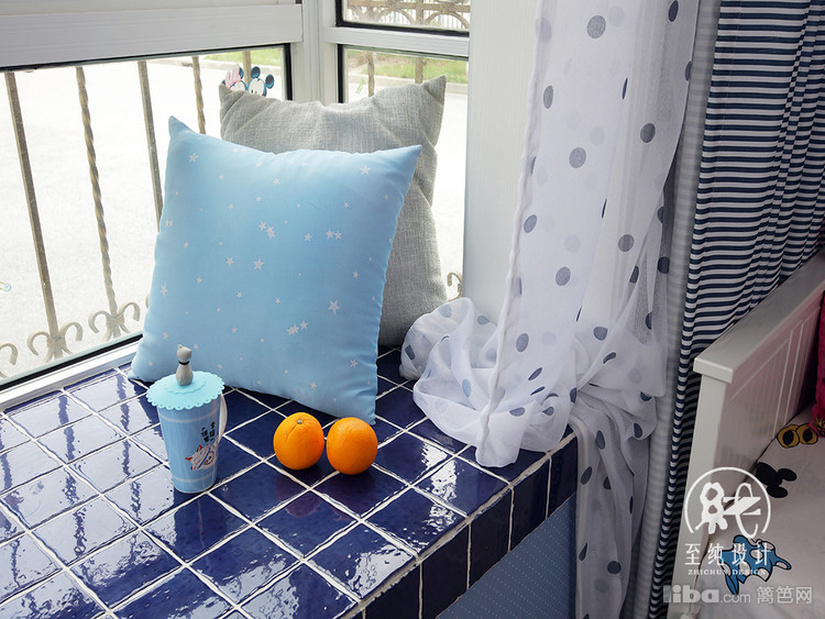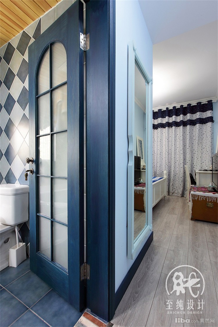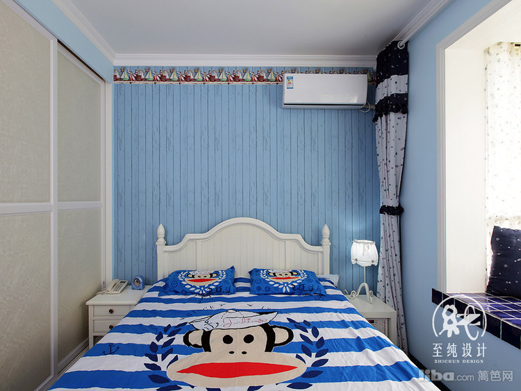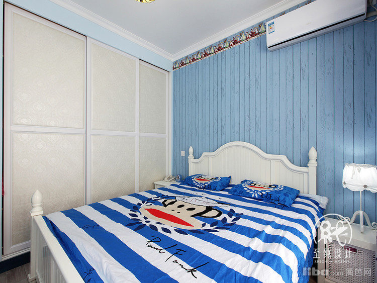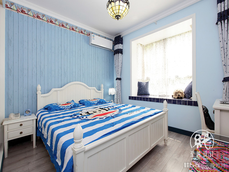 卧室:卧室天蓝色的墙面,与床上用品的颜色相呼应, 突出了mediterranean的色彩上的亮点。